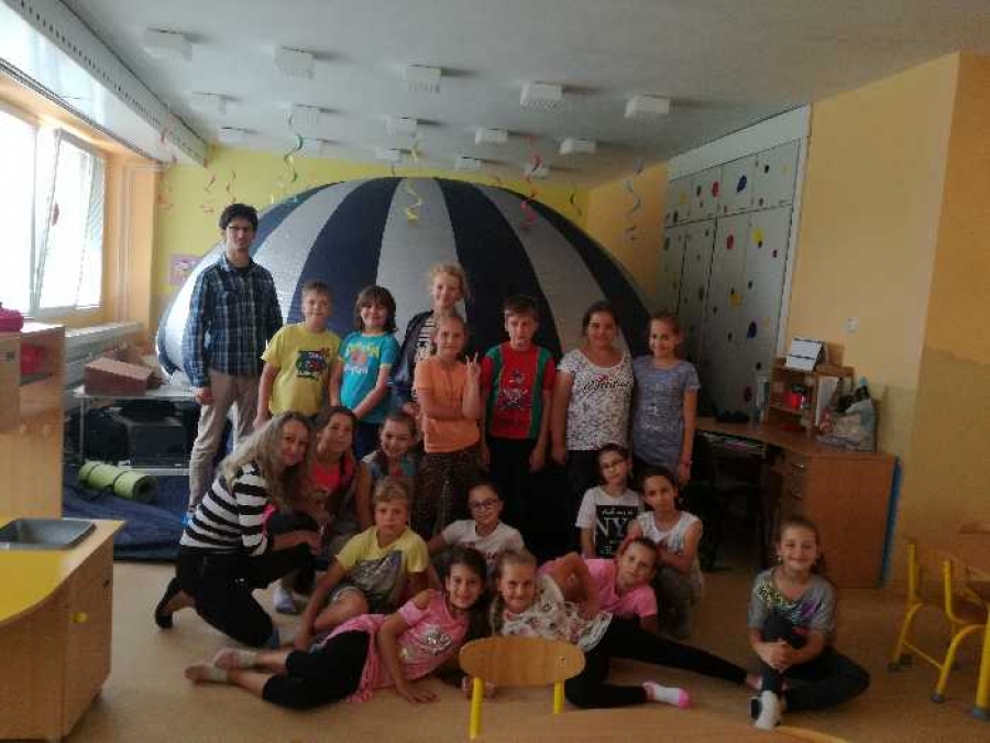 Po chvíľke zistili, že sférické kino alebo mobilné planetárium je vlastne nafukovací stan, ktorý umožňuje divákom v ľahu sledovať film z každej strany. Máte zvláštny dojem, ako by vás film obklopoval. Už len ten spoločný pobyt v tmavom priestore bez okien bol pre deti veľkým zážitkom. Ťažko sa zážitok popisuje, najlepšie je ten efekt sám prežiť. Tretiaci cestovali so zvedavou lienkou Dolores a svätojánskym chrobáčikom Michaelom zázračným svetom prírody, aby odhalili najväčšie tajomstvo stromov! Vo svojej škole pre chrobáčiky našli odpovede napr. ako stromy získavajú energiu zo slnka, prečo rastú, ako to, že sa voda z koreňov dostáva v rozpore so zákonmi gravitácie do listov a mnoho iných zaujímavostí. Bolo to naozaj netradičné vyučovanie a zaujímavý pohľad na život stromov. Odporúčame.