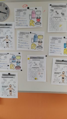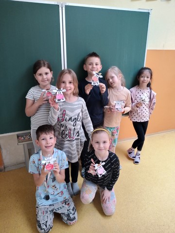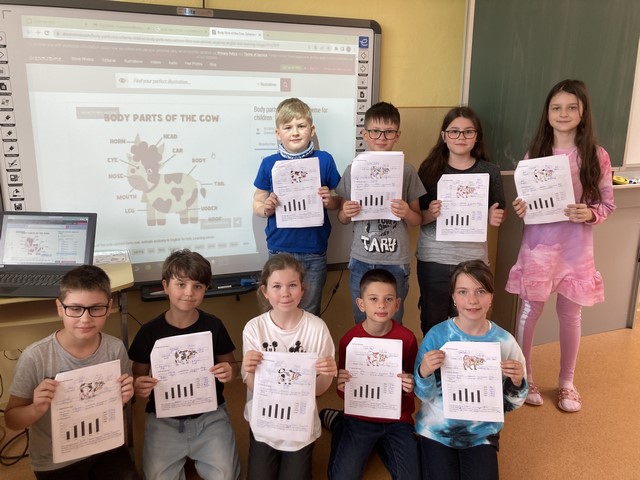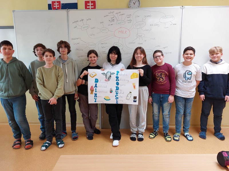 Učitelia 1. stupňa si v triedach pripravili projektové vyučovanie. Riešili sme mliečne matematické úlohy, čítali texty s porozumením o mlieku, pripravili sme si výstavku z obalov mliečnych produktov, vyrobili sme kravičky z odpadu mliečnych výrobkov, písali sme mliečne recepty, kreslili sme kravičky a logá ku Dňu mlieka i spoznávali miesta na Slovenku, kde sa nachádzajú mliečne fabriky, ktoré vyrábajú rôzne mliečne produkty.