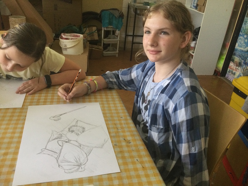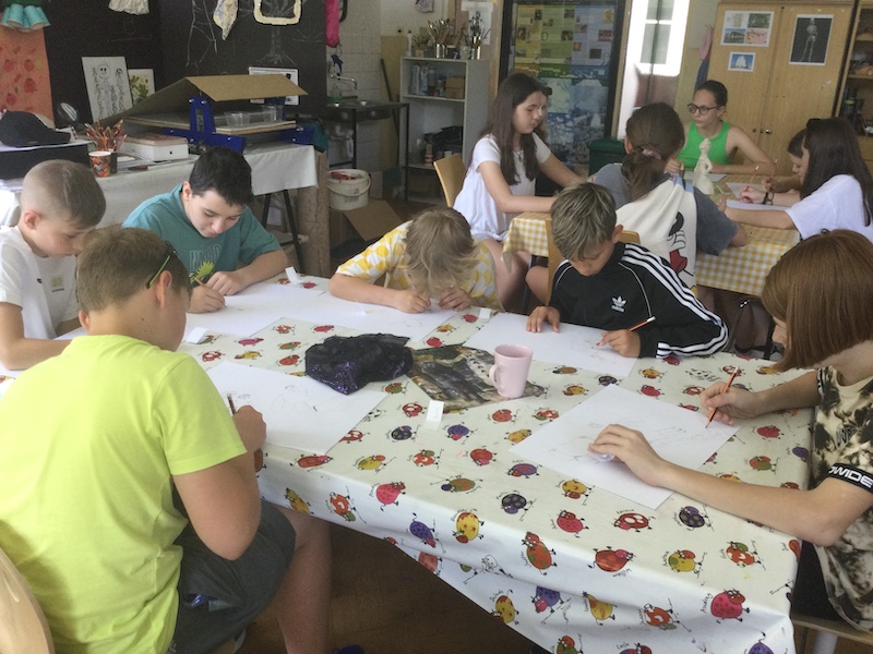 Žiaci pracovali v štyroch skupinách a ich úlohou bolo nakresliť zátišie pripravené na stole. Predtým prebehla motivácia, skúmali sa asociácie, čo si predstavujú pod pojmom výtvarné umenie. Každý mal napísať na lístok jedno slovo, ktoré súvisí s výtvarným umením. Lístky zozbierala, premiešala a každý si vytiahol iný. Slovo mohol zobraziť alebo napísať do práce. Súčasťou zátišia boli aj reprodukcie slávnych umelcov, ktoré sa formou rozhovoru interpretovali. Niektorých žiakov hneď presvedčila, iní sa mali poradiť s rodičmi.