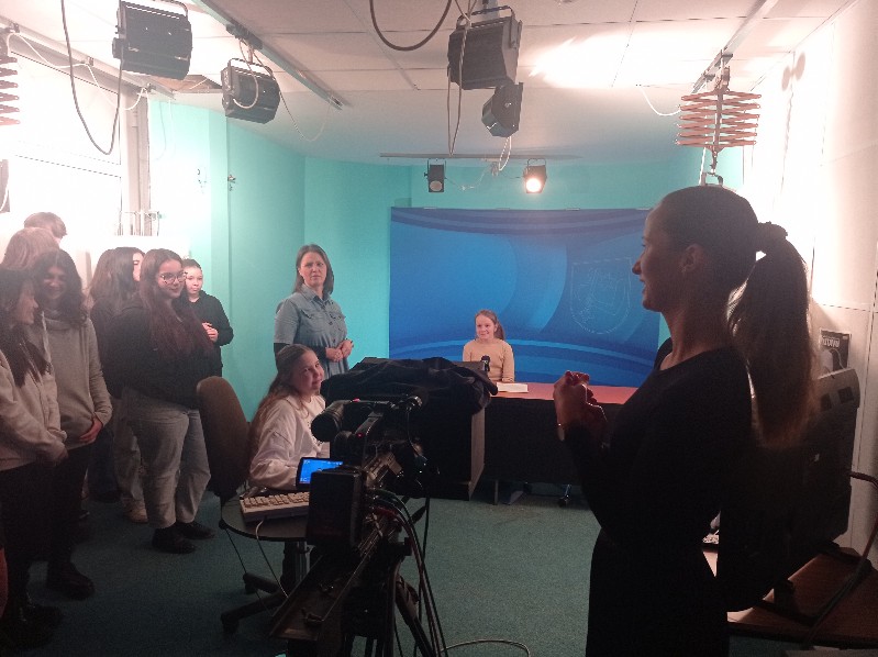Zaujímavým programom žiakov sprevádzali pani redaktorky a páni kameramani a technici. Najprv sme nahliadli do priestorov redakcie, kde sa pripravujú reportáže. Následne sme sa dozvedeli mnoho zaujímavostí o histórii technického vybavenia televízie - prezreli sme si priestory, v ktorých sa spracúva zvuková a obrazová zložka televíznych príspevkov. Zlatý klinec programu bolo samotné televízne štúdio, v ktorom si naši žiaci na vlastnej koži vyskúšali, aké to je, sedieť pred kamerou či obsluhovať čítačku textov. Musíme uznať, nebolo to také jednoduché, no niektorým to šlo naozaj skvele. Ktovie, možno aj táto návšteva inšpiruje niektorého nášho žiaka k rozhodnutiu v budúcnosti sa profesionálne venovať masmédiám a žurnalistike.