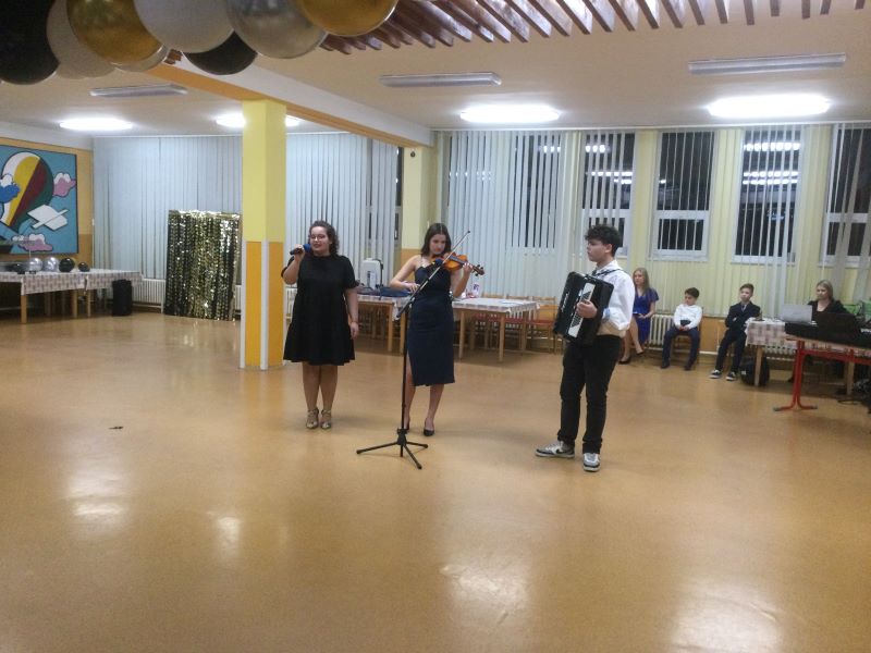 Talentovaní žiaci našej školy a členovia školského parlamentu pripravili pestrý kultúrny program - na úvod zahralo gitarové kvinteto, po ňom zatancovali šikovné baby z 6.A, ktorým do tanca spievali a hrali žiačky z 8. A, nasledovalo kolo ľudového spevu, hudby a tanca, kde sa nám predstavili Slávka a Saša (9.B) v sprievode Michala (8.B), vrcholom tohto kola bolo vystúpenie folklórneho súboru Chemlon.V poslednej časti programu nám zahrali Júlia (8.B) na basgitare, Šimon (9.A) na saxofóne a na záver krásne zaspievala Kristína (8.C). Celé to skvele odmoderovali šarmatné deviatačky Mima a Slávka (9.AB).