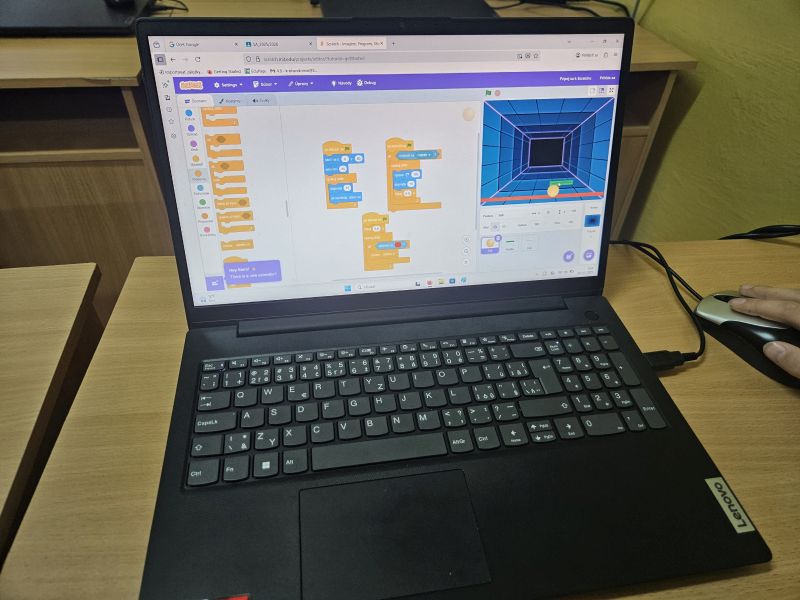 Že programovanie úzko súvisí s matematikou, sa presvedčili žiaci 5.A na hodine Seminára z matematiky. Ich úlohou bolo naprogramovať v prostredí Scratch legendárnu hru Pong.