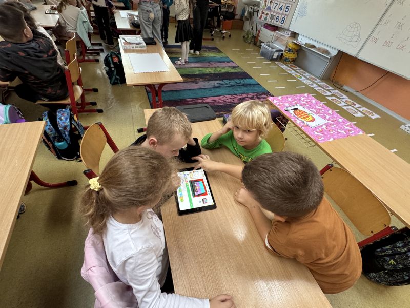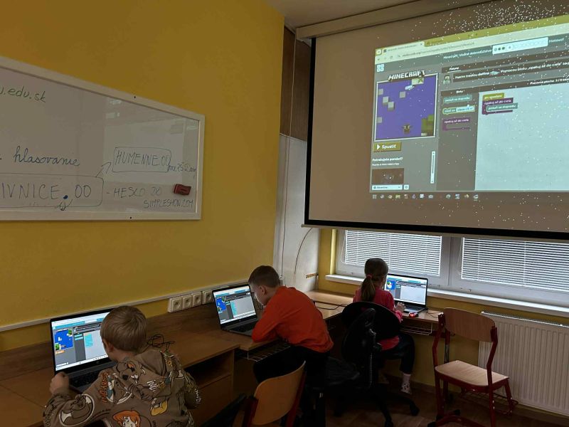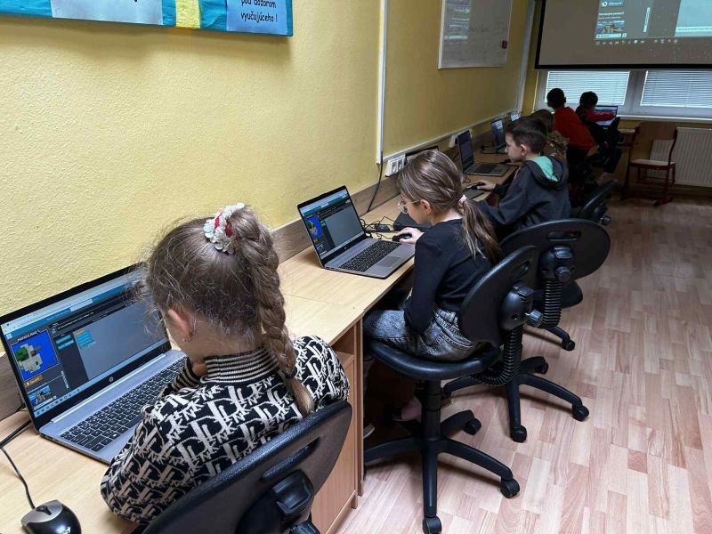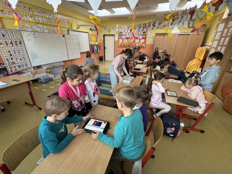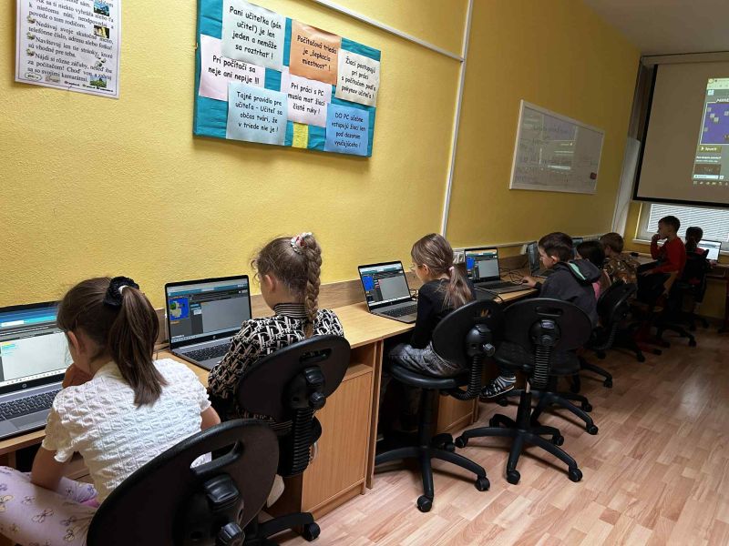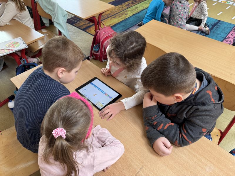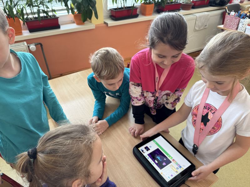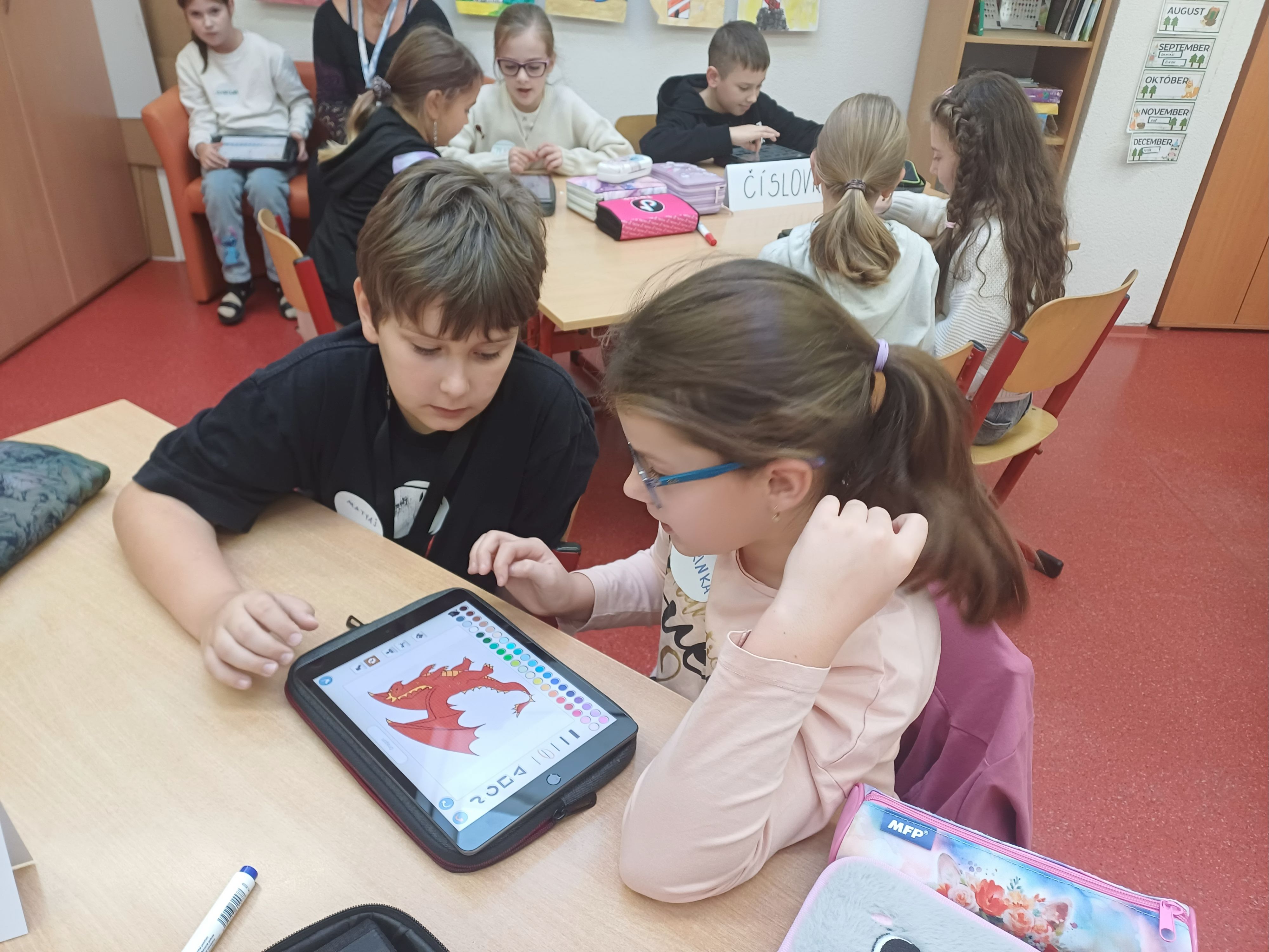 Na prvom stupni kódovaním začali hneď prváci. Žiaci z sa ponorili do sveta vizuálneho programovania pomocou aplikácie . V tabletoch dávali dokopy farebné bloky príkazov a s úžasom sledovali, ako ich postavičky ožívajú a vytvárajú jednoduché animácie.