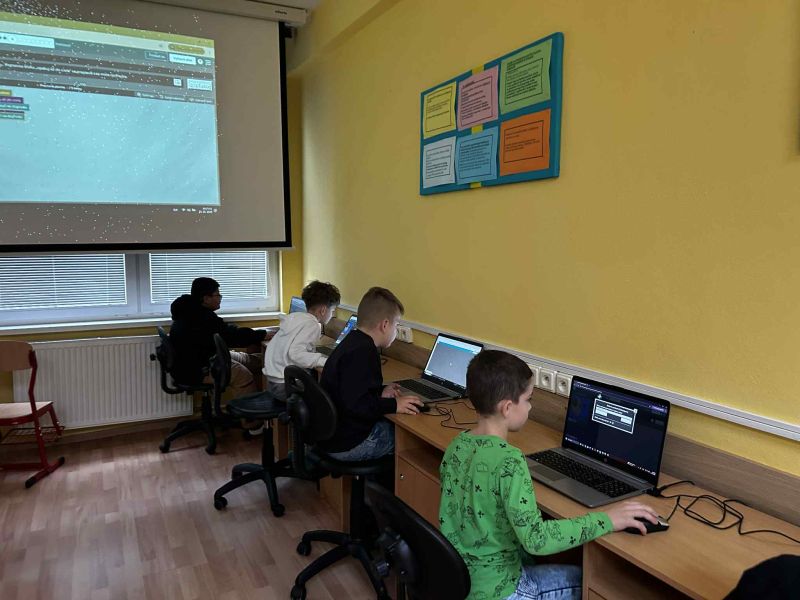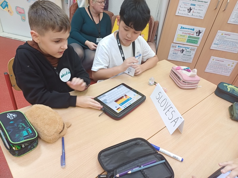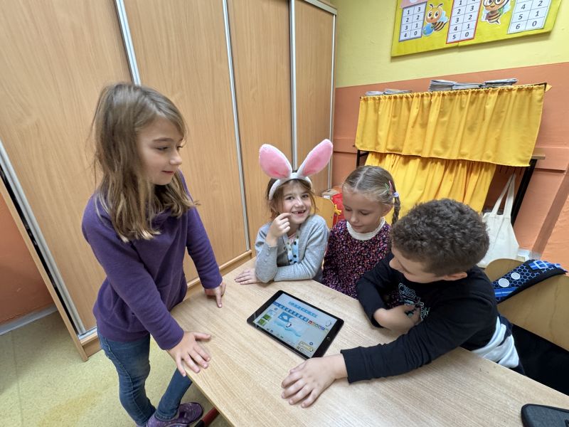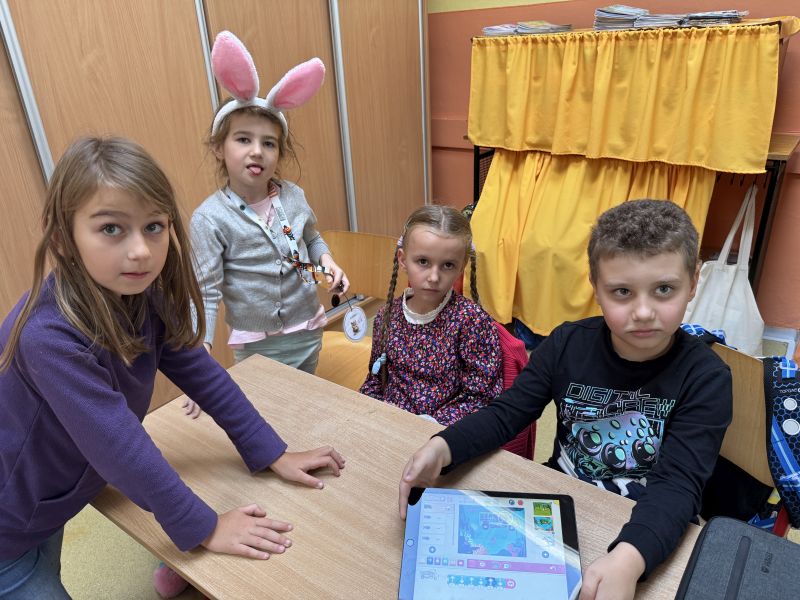 Štvrtáci pozvali na svoju hodinu kódovania aj žiakov z českej partnerskej školy, ktorí boli v tom čase u nás na mobilite. So žiakmi 4.A pekne spolupracovali a vytvorili animácie v aplikácii Scratch Jr.