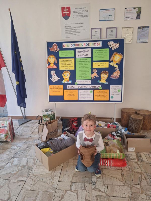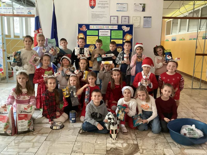 – deň, keď sa dobré skutky menia na teplo, čo zohrieva nielen srdcia ľudí, ale aj tých, ktorí hovoriť nevedia. Rozhodli sme sa otvoriť svoje srdcia aj tým najvernejším tvorom. Tým, ktorí nepovedia „ďakujem“, ale ich vrtivý chvost je najúprimnejším poďakovaním na svete. A tak vznikla na našej škole zbierka pre psíkov z útulku Humenské labky, aby zimu prežili o trochu ľahšie, teplejšie a s pocitom, že na nich niekto myslí. Ďakujeme každému jednému z vás – rodičom, žiakom aj triednym učiteľom – za otvorené srdce, ochotu pomáhať a za to, že dobro v našej škole stále nachádza svoje miesto. Vaša pomoc má pre psíkov cenu teplého domova. ĎAKUJEME.