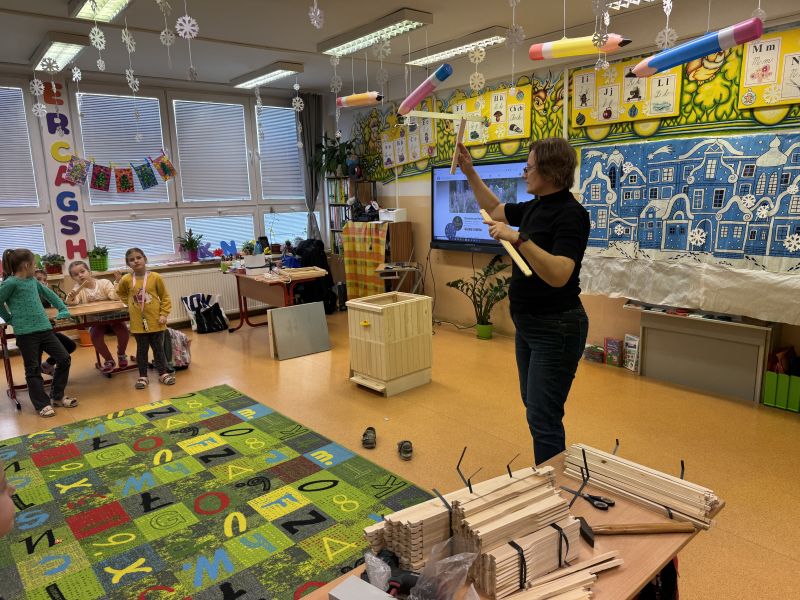 - Majstri včelári v akcii: V rámci prvej aktivity sa deti zmenili na malých remeselníkov. Zoznámili sa so zložením včelieho úľa a vyskúšali si dôležitú technickú úlohu – zbíjanie rámikov. S nadšením si vyskúšali, ako sa jednotlivé diely spájajú do celku, ktorý bude čoskoro slúžiť novým obyvateľom včelnice.