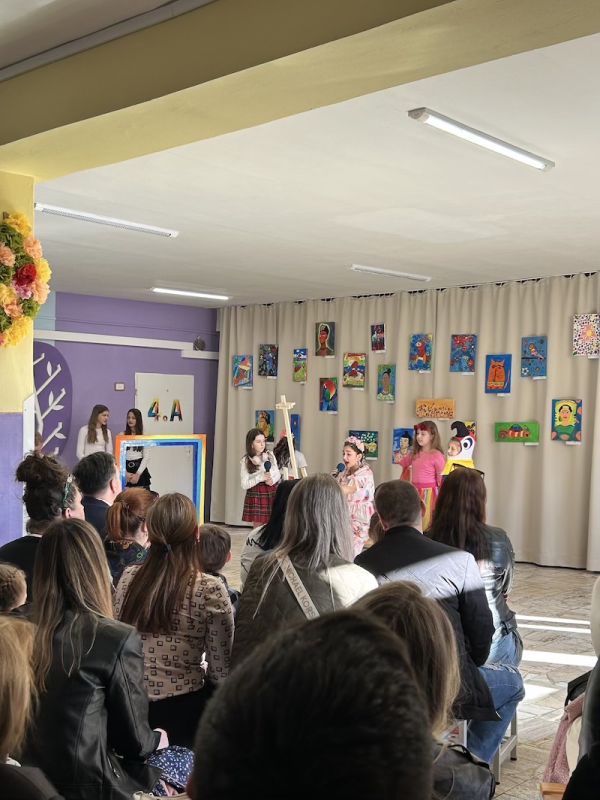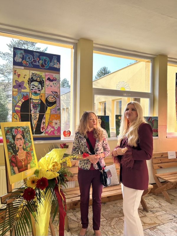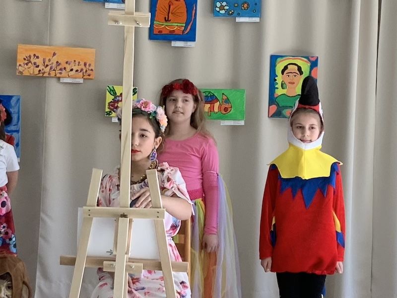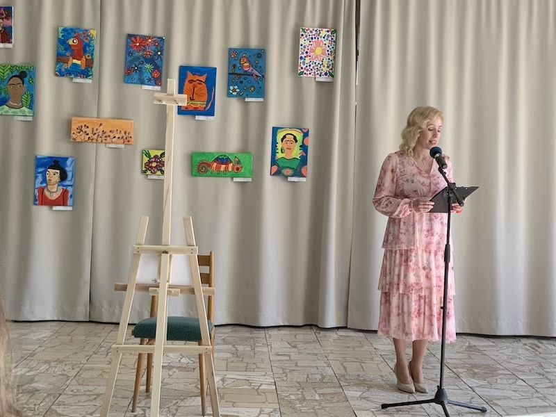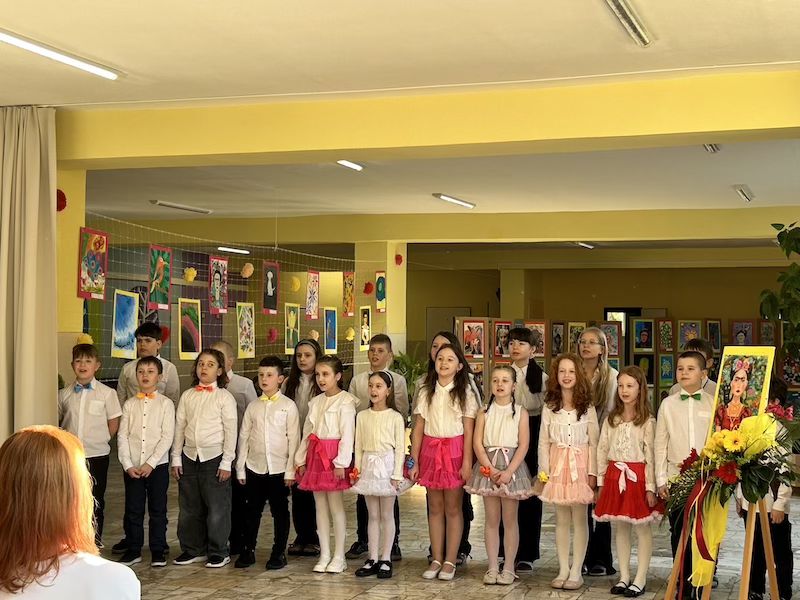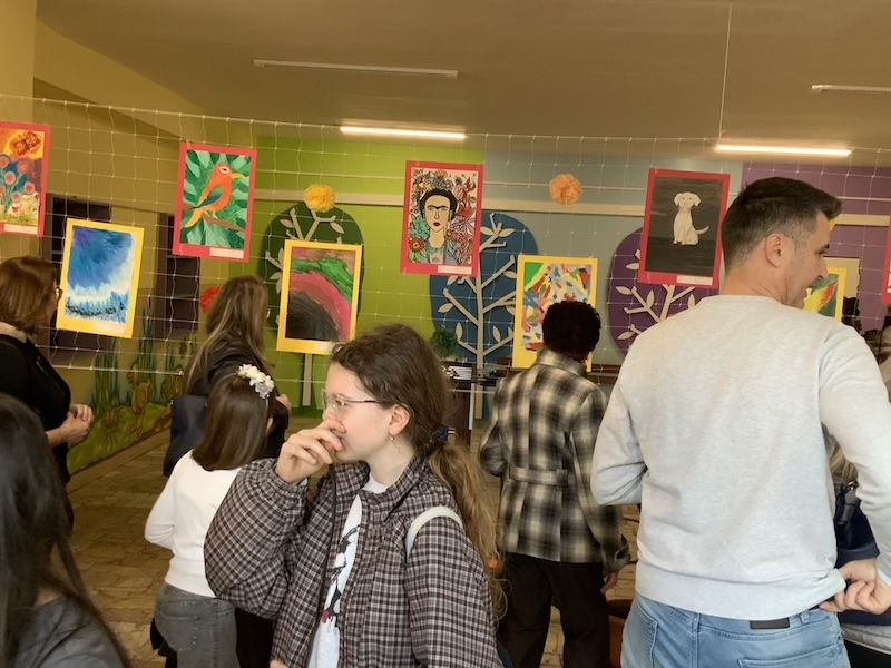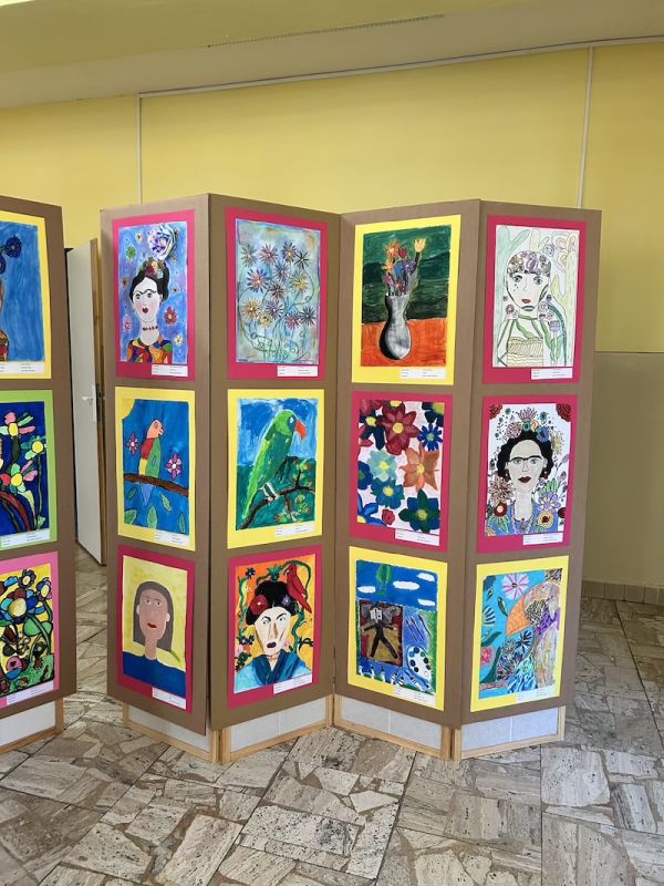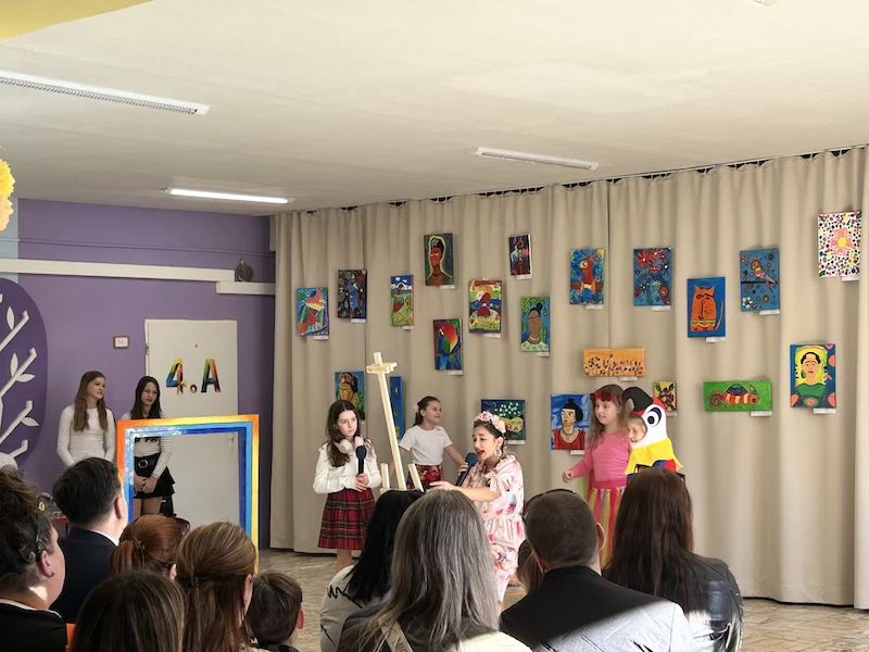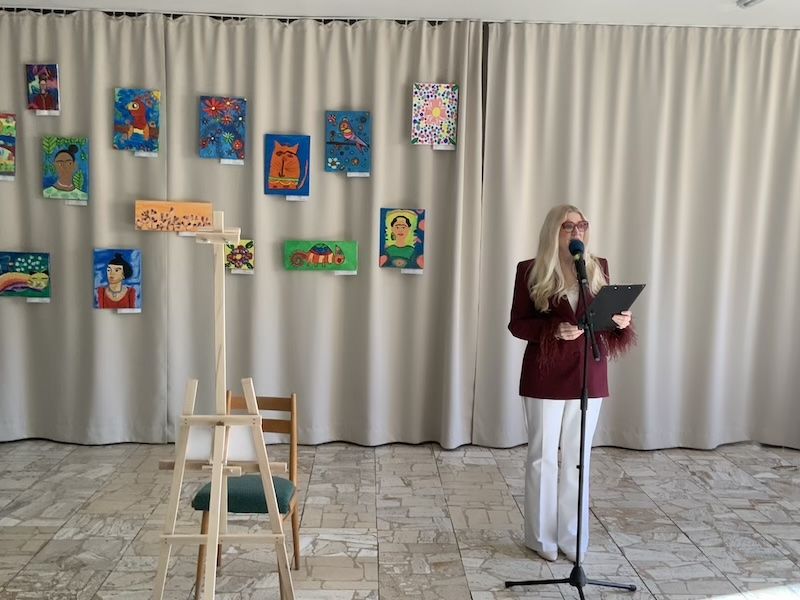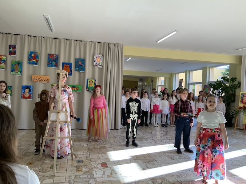 Následne sa slova ujala pani učiteľka Jana Antalová, ktorá celú výstavu iniciovala a organizačne zastrešila. Priblížila myšlienku podujatia a predstavila program, ktorý bol pestrý a plný umeleckých zážitkov. Nechýbalo krátke divadelné vystúpenie žiakov z dramatického krúžku, ktorí citlivo priblížili fragmenty zo života Fridy Kahlo. Silným momentom bolo aj hudobné vystúpenie žiakov tried 2. B a 5. A, ktorí zaspievali pieseň inšpirovanú muzikálom o tejto výnimočnej umelkyni.