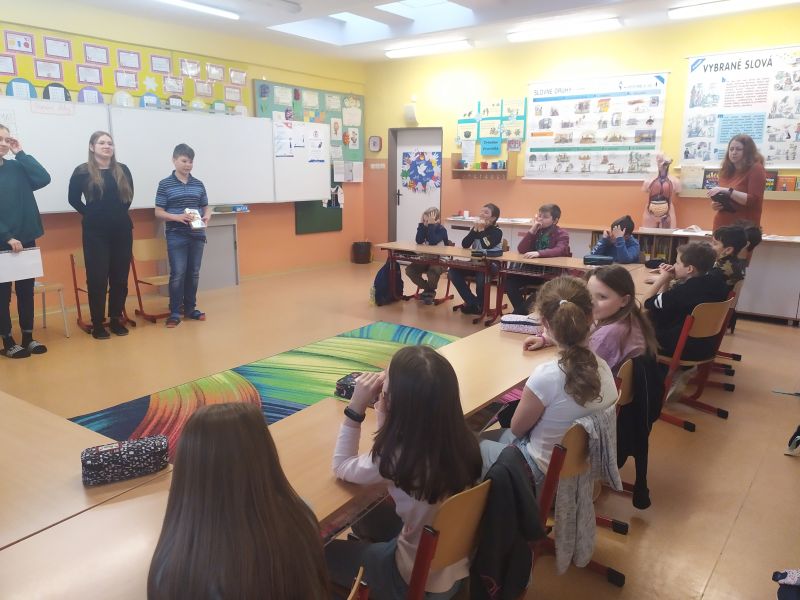 Priestory Vihorlatskej knižnice boli načas skrášlené aj ilustráciami detských kníh, ktoré sa stali obľúbenými medzi štvrtákmi zo 4. A triedy. V konkurencii iných základných škôl Hanka Macková získala pekné 2. miesto za ilustráciu detskej knihy " Môj šťastný život." Medzi ilustráciami žiakov boli knihy rôznych žánrov, obľúbených spisovateľov pre deti i encyklopédie. Každého baví čítať niečo iné, každý má iné čitateľské schopnosti a podľa toho si môže pre seba vybrať knihu, ktorá mu je po chuti. Po prehliadke iluistrácií obálok kníh nám pani knihovníčka porozprávala zaujímavosti zo sveta literatúry a knižnice, nuž a potom sme si už mohli vypožičať si knihy, ktoré po prečítaní budeme v škole prezentovať a tvoriť recenzie . Ďalšou čitateľskou aktivitou bolo " Čítanie starších mladším". Do našej triedy zavítali siedmaci s knihou " Môj brat je superhrdina". Po prečítaní krátkych ukážok pracovali so štvrtákmi na rôznych úlohách. Túto knihu máme aj v našej triednej knižnici, preto siedmaci nám vnukli myšlienku pokračovať v spoločnom zážitkovom čítaní tejto zábavnej knihy. No a už tradičným sa stalo u nás v triede ranné zážitkové čítanie - tentoraz dočítavame knihu Časovaňa- autor JO NESBO. Odporúčame rozbehnutým čitateľom, ktorí majú radi šialené vynálezy, napätie i humor. Do čítania priatelia!