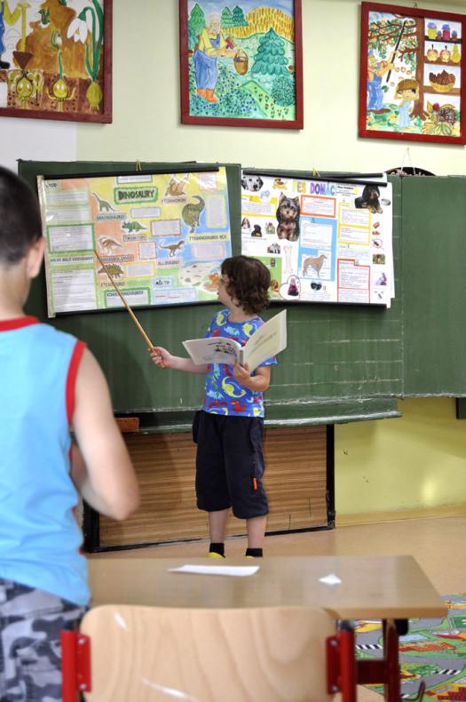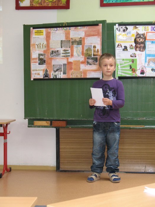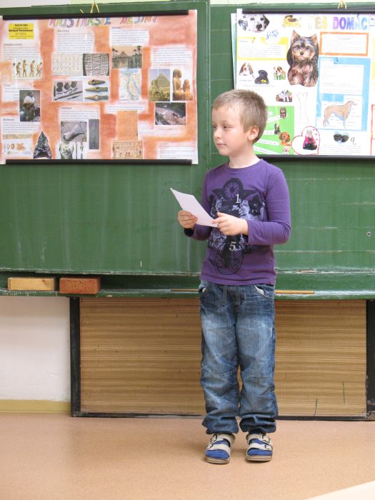 Ako pozorujeme hviezdy? Aké sú najstaršie dejiny? Ako žili dinosaury? Kto je najlepší futbalista? Odpoveď na tieto otázky ako aj mnoho ďalších zaujímavých informácií ste sa mohli dozvedieť na prezentácii ročníkových prác žiakov 1.A triedy. Pod šikovným vedením moderátoriek Aničky Kasaničovej a Dianky Doležiovej sa začalo predstavovanie jednotlivých prác. Žiaci ohromili vedomosťami, ktorými nedisponujú ani mnohí dospelí. Dokázali, že vedia vo svojom veku rozprávať o sebe , o svojich záľubách, domácich miláčikoch. Do prezentácií jednotlivých tém sa otázkami aktívne zapájali všetci (spolužiaci aj rodičia). Prezentácia je skvelým nástrojom na zlepšenie prezentačných zručností žiakov, ktorí si tak už od malička precvičujú vystupovanie pred publikom. Okrem toho sa žiaci učia vyhľadávať a spracovávať informácie, ktoré nenájdu v žiadnych učebných osnovách.