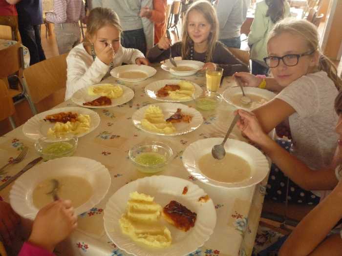 Stále sa na ňom objavuje málo rýb. Preto sme sa rozhodli spestriť stravovanie v našej školskej jedálni o jedlá pripravované z rýb. Naša škola sa zapojila do projektu "Ryby, zelenina a pitný režim v školskom stravovaní" , ktorý organizuje OÚ Prešov, odbor školstva v mesiaci október. Raz v týždni naša vedúca ŠJ p. Dudášová zaradí do jedálneho lístka jedlá z rýb. A čo ponúka?