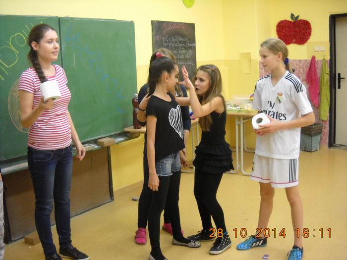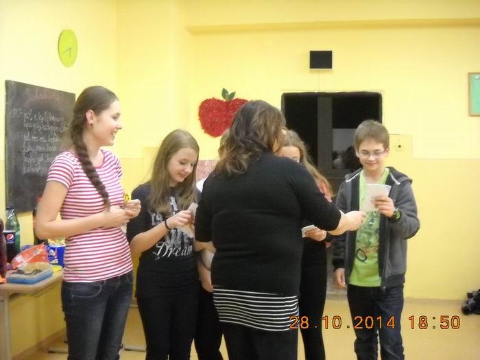 Po odhalení p. učiteľky začali večerné hry. Družstvo hnedých, modrých a zelených v súťaži bojovalo o pozíciu prvého miesta. A ako to už býva, vyhralo to, s ktorých bojovalo odhalené strašidlo. Zábava bola do neskorého večera so všetkým, čo k nej patrí.