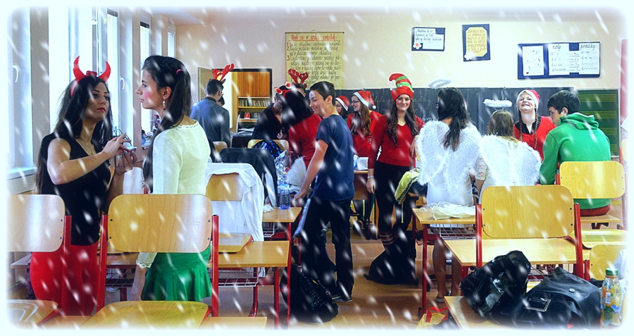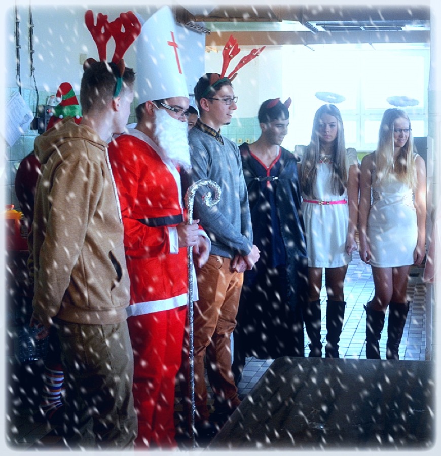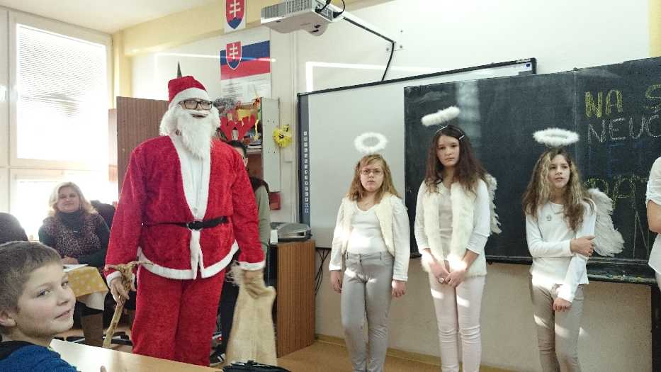 A veru tomu bolo tak aj v tomto roku na našej škole. Mikuláš spolu so svojimi pomocníkmi - škriatkami, anjelikmi ale aj s čerticou a čertíkom, obdarili všetkých zamestnancov a žiakov nielen sladkosťami ale aj pekným programom. Postarali sa o to naši deviataci a šiestaci......Mikuláš, ďakujeme!