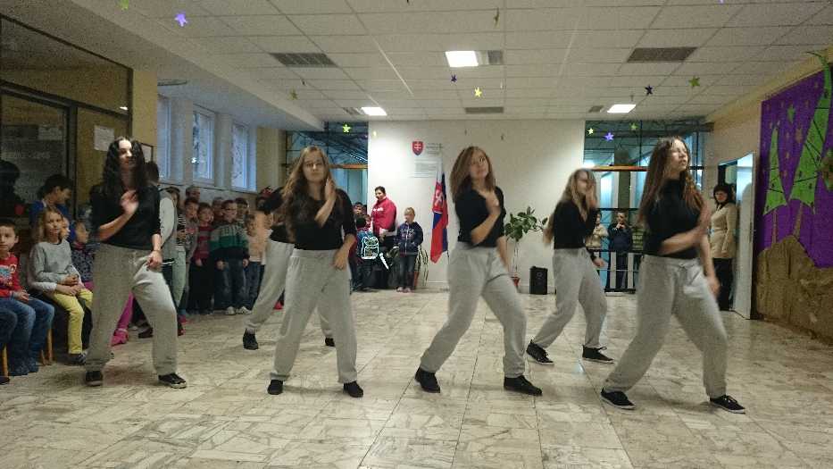 Každý rok pred Vianocami si spríjemňujeme vianočné chvíle na slávnostnej akadémii v CVČ - Dúha vianočnými piesňami, koledami, vinšami, tancom. V tomto roku piesne, koledy, vinše, novoročné pozdravy a tance vítali žiakov, rodičov a zamestnancov školy 18. a 19. decembra vždy o 7:30 v školskom vestibule. Známe vianočné piesne a koledy sa niesli v priestoroch školy v podaní speváčikov - chlapcov 6.C a 6.D triedy. Aj Nina Adameková s Dávidom Čelovským rozsypali pesničkové vločky. Vianočnú náladu priniesli svojou piesňou aj Laura Pločicová a Tamara Rohaľová Novoročné vinše a pozdravy priali Lucia Kožinová, Nina Bodnárová, Jana Mihaľková a Simona Tomahoghová. Tanečné skupiny dievčat pracujúce v tanečnom krúžku ako aj tanečná skupina Flame roztancovala celý vestibul školy. Všetko sa to dialo pod vedením p. Vatahovej a p. Dzurčaninovej. K príjemnej vianočnej atmosfére prispeli aj vynikajúce makovníky, orechovníky a kakaovníky s horúcim vianočným čajom, ktoré nám pripravili naše tety kuchárky. Všetkým účinkujúcim, pedagógom ako aj kuchárkam patrí veľké ď a k u j e m e.
