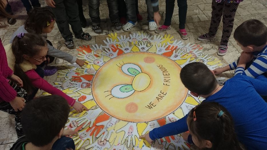 Spoločne sa pochytali za ruky a zarecitovali básničku Iskierku priateľstva a stiskom pravej ruky odovzdávali pozdrav svojmu kamarátovi. Napäto a v tichosti očakávali návrat pozdravu (stisku) do rúk pani učiteľky. Potom postupne začali vyhľadávať svoju rúčku na usmievavom ,,Slniečku priateľstvá,"na ktorej bola nakreslená tvárička svojho najlepšieho kamaráta. Pesničkou Mám ručníček, mám...sa stretli v krátkom objatí a posúvali kamarátstvo ďalej. Však nenadarmo sa hovorí, že priateľ je niekto, kto pozná pieseň v našom srdci a dokáže nám ju zaspievať, keď my zabudneme slová. Priateľstvo môže pretrvávať jedine medzi dobrými ľuďmi. A platí to aj pre prvákov.
