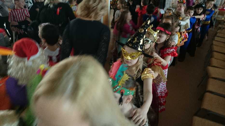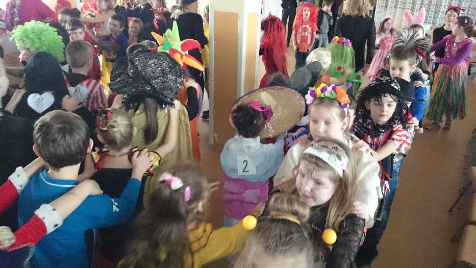 Tie patria k ďalším ľudovým tradíciám, ktoré v našej ZŠ dodržiavame. Preto sa dňa 20.2.2015 žiaci 1.stupňa stretli vo fašiangovo vyzdobenej školskej jedálni, ktorá sa premenila na tanečný parket. V tanečnom kole sa predstavili rozprávkové i filmové postavy, zvieratká a športovci. Všetci sa spolu zabávali pri tónoch hudby, o ktorú sa postaral DJ Róbert. Atmosféra počas celého karnevalu bola výborná. Všetky masky boli nádherné, originálne, jedinečné. Porota v zložení pani učiteliek nemala ľahkú úlohu, ale nakoniec vybrala tie najlepšie a najkreatívnejšie masky, ktoré získali vecné ceny. Ale aby aj ostatným, ktorí sa tiež snažili, nebolo ľúto, sa uštedrila sladká odmena. Dúfame, že sa dopoludnie všetkým páčilo a tešíme sa na budúci rok. Poďakovanie patrí všetkým, ktorí podporili a akýmkoľvek spôsobom pomáhali pri uskutočňovaní tohto skvelého detského, fašiangového karnevalu. Veľké ďakujem si zaslúžia naši žiaci za skvelú atmosféru, počas celého podujatia.