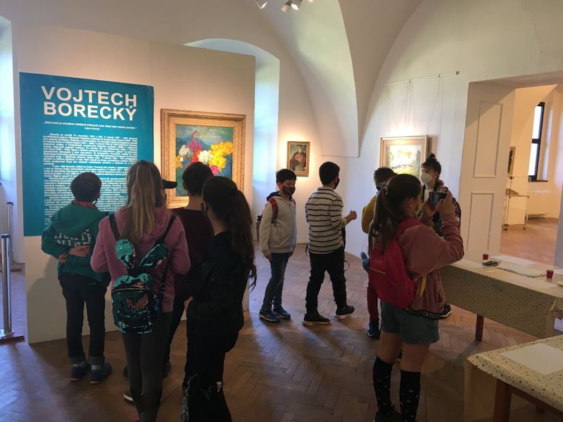 Výstavou ich v galerijnom oddelení sprevádzala Mgr. Dana Kataniková. Žiakom priblížila tvorbu umelca Vojtecha Boreckého a pripravila pre nich zaujímavú aktivitu – maľbu zátišia. Nebola to však obyčajná maľba, po ukážke postupu mali výsledné obrázky žiakov „rozostrený“ efekt.