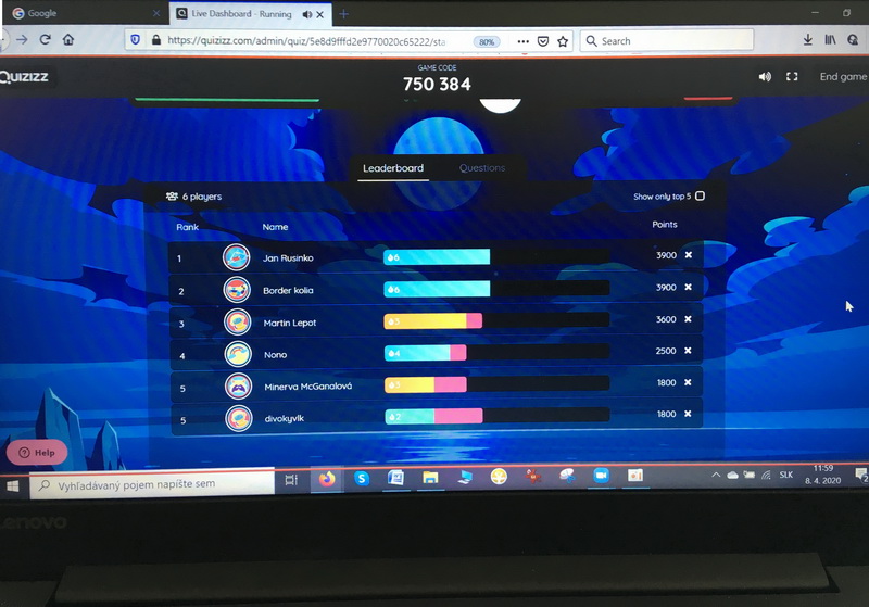 Keďže sa na vyučovacích hodinách vlastivedy učíme o Slovensku, zaradila som do yučovania tvorbu kvízov o Slovensku. Ako si vytvoriť taký kvíz sme sa učili na hodine informatiky pred prerušením vyučovania, počas online hodín sme už len dotiahli detaily a kvízy sme si zahrali. Môžem potvrdiť, že Quizizz je skvelý nástroj s ktorým sme zažili veľa zábavy...Kvízy o Slovensku sme poslali našim projektovým partnerom do Českej republiky (Trutnov). Žiaci z Trutnova pracovali na rovnakej aktivite, vytvorili množstvo kvízov o Českej republike. Tešíme sa na spoločnú hru :-)