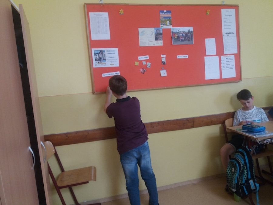 V úvode žiaci kreslili útvary, ktoré sú podľa nich súmerné, resp. symetrické. Ich ďalšou úlohou bolo priniesť na nasledujúcu hodinu obrázky z časopisu, z internetu, fotky, ... na ktorých sú súmerné objekty. Tie následne delili do troch základných skupín a to konkrétne na osovo súmerné útvary, stredovo a osovo súmerné útvary, stredovo súmerné útvary a iné súmernosti. Niektorí žiaci doniesli veľmi krásne príklady súmerností a spoločne sme všetky žiakmi prinesené obrázky zaradili počas hodiny do jednotlivých skupín a ako je vidieť na priložených fotkách, najväčšiu skupinu tvorili osovo súmerné útvary.