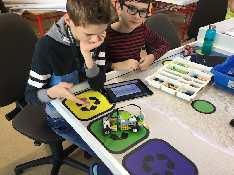 Chlapci z robotického krúžku prezentovali svoje nápady ako využiť robota pri čistení jazera od odpadkov, napr. papiera, plastov.