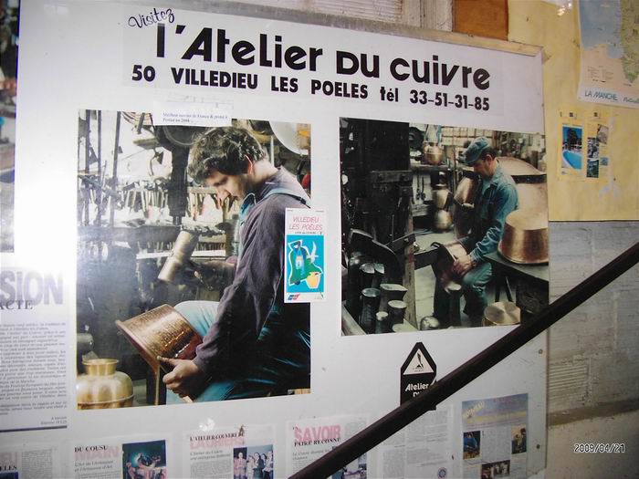 Hostitelia nám dnes pripravili exkurzie po múzeách, ktoré približujú dejiny a kolorit mestečka Villedieu les Poeles. Po krátkej prechádzke úzkymi uličkami mestečka sme sa ocitli v múzeu spracovania medi, ktoré zároveň slúži aj ako továrnička na výrobu rôznych medených predmetov. Po krátkom videofilme sme s nemým úžasom sledovali, ako pod rukami zručných remeselníkov vznikajú medené hrnce, či ozdobné predmety vyrobené z tohto vzácneho kovu. Ručná výroba klasických medených predmetov je dodnes nezmenená už niekoľko storočí...