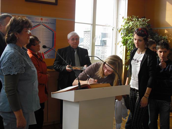 V podvečer nás čakala významná oficiálna návšteva s predstaviteľmi mesta, V priestoroch radnice nás prijal primátor mesta, ktorý aj prostredníctvom nás posiela na Slovensko srdečné pozdravy primátorovi a Humenčanom. Prijatia sa zúčastnili aj hostiteľské rodiny, slovenskí a francúzski pedagógovia a z rúk primátora mesta sme si všetci odniesli drobné darčeky typické pre tento región – upomienkové predmety vyrobené z medi. Návšteva radnice vyvrcholila malou recepciou, kde sme sa presvedčili, že slovenské deti už naozaj prekonali tie prvé (možno aj jazykové) bariéry a večer strávili vo veselej spoločnosti svojich nových kamarátov a ich rodičov.
