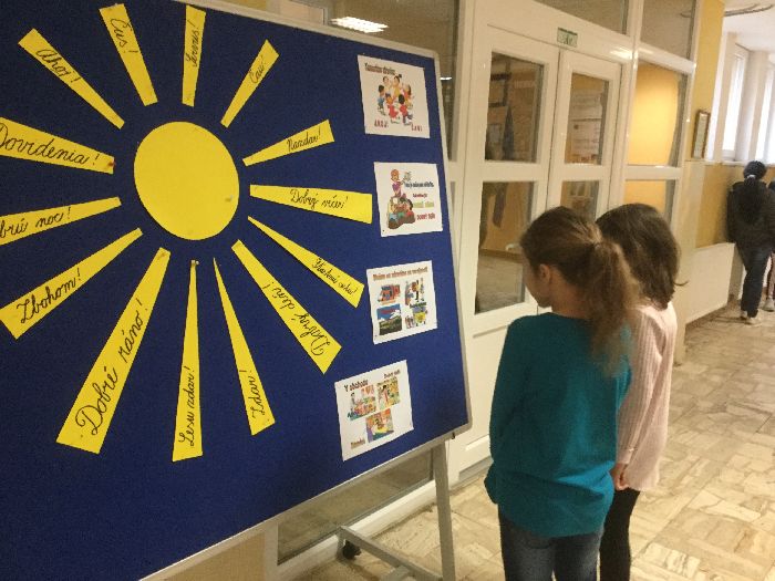 Vytvorili sme niekoľko podarených plagátov s pozdravmi z rôznych kútov sveta a vyzdobili ňou náš vestibul, kde si mohol každý pozdravy prečítať a tiež sa o nich dozvedieť rôzne zaujímavosti. Počas celého týždňa mohli žiaci na nástenku pozdravov pripnúť svoj vlastnoručne vyrobený pozdrav pre niekoho, koho chcú potešiť. A na záver niekoľko dobrých dôvodov, prečo by ste mali začať svoj deň pozdravom. Je to slušné. Pozdrav zbližuje. Vytvára demokratickejšie prostredie. Je rýchle a je zadarmo. Upozorníte na seba. Redukujete trápnosť. Úprimný pozdrav dokáže zahriať pri srdci a zlepšiť človeku deň. Dovidenia do budúceho roku.