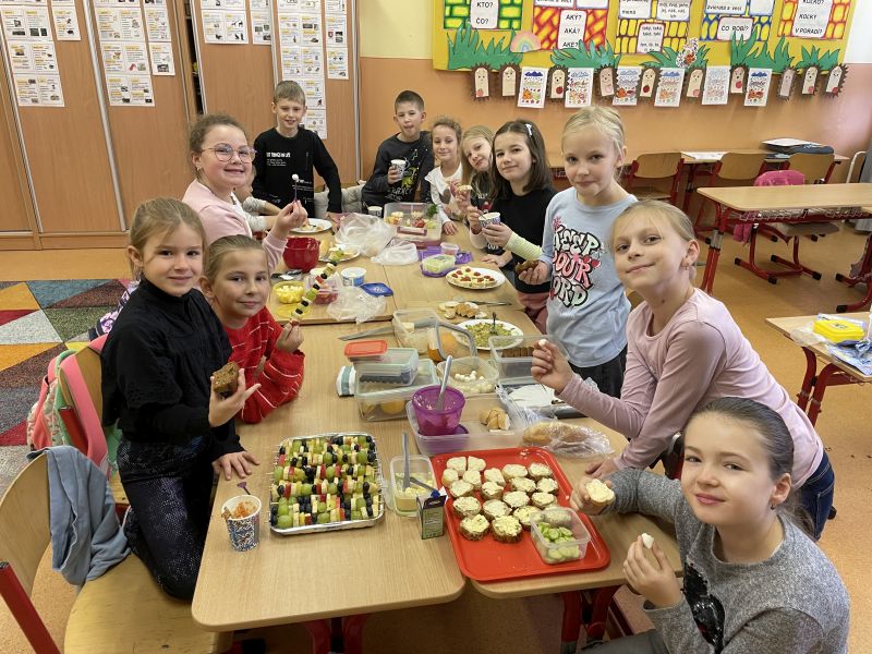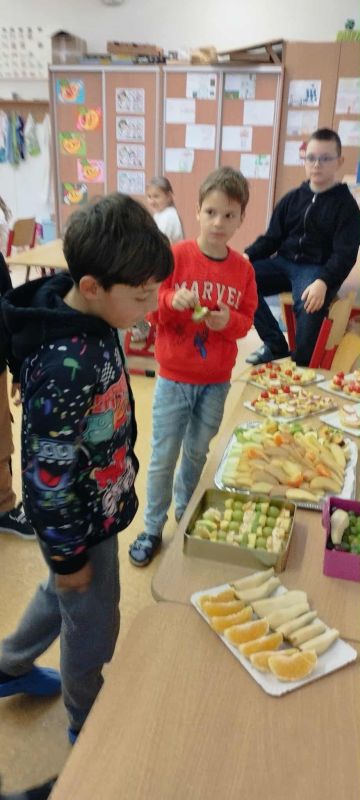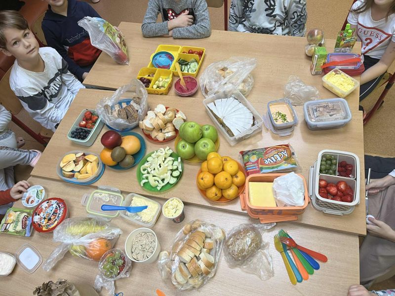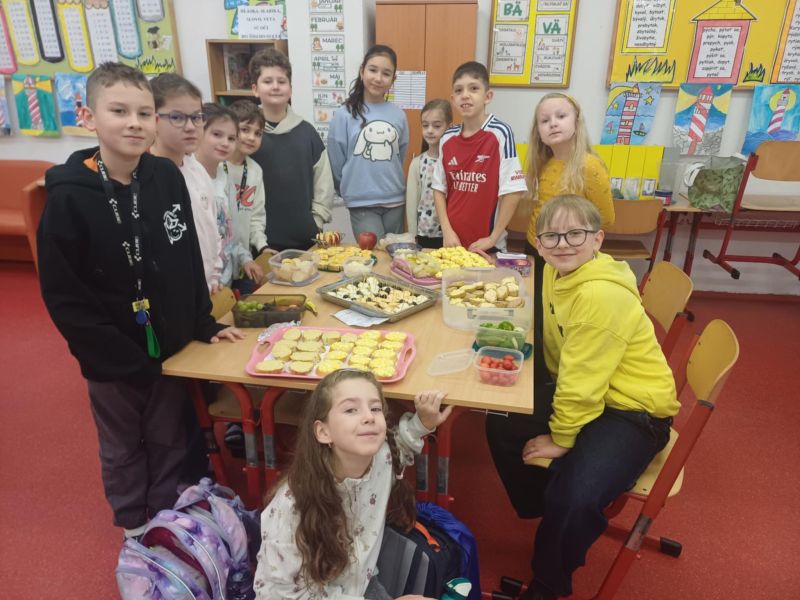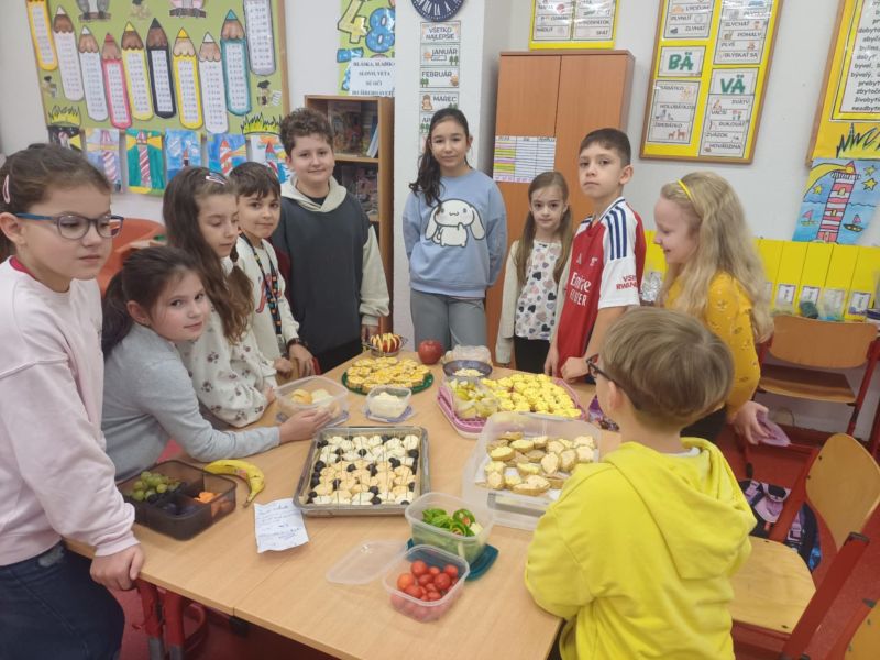 Aj preto sme sa na našej škole rozhodli venovať Svetovému dňu výživy, ktorý sme si spoločne pripomenuli 16. októbra. Našou snahou bolo žiakom hravou formou ukázať, že zdravo sa dá nielen stravovať, ale aj žiť – s radosťou, záujmom a chuťou objavovať nové chute. Počas dopoludnia sa triedami niesla vôňa čerstvých nátierok, ovocia a domáceho pečiva. Žiaci 1. stupňa mali možnosť ochutnať množstvo zdravých a chutných jedál – od farebných šalátov a sviežich nápojov až po ľahké zákusky. Všetky dobroty s láskou pripravili rodičia našich žiakov, ktorým patrí úprimné poďakovanie za spoluprácu, nápaditosť a ochotu zapojiť sa. Spoločnými silami sme tak vytvorili deň, v ktorom sa zdravé jedlo spojilo s radosťou, tvorivosťou a spoločenstvom.