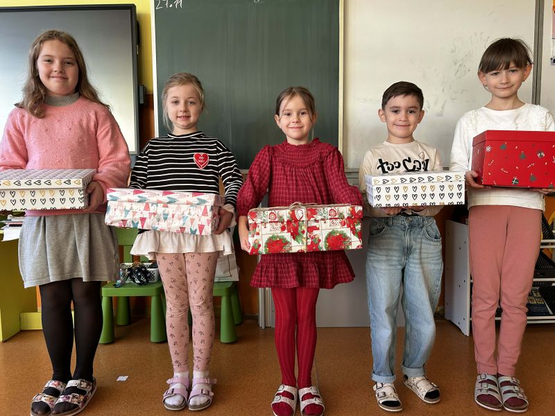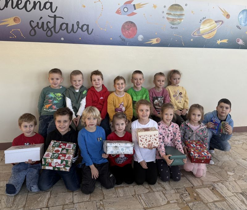 v ktorom nejde o rozmery škatule, ale o veľkosť srdca. Cieľom bolo potešiť starších ľudí žijúcich v zariadeniach a ústavoch, často ďaleko od rodiny, kde je najcennejším darom práve pocit, že na nich niekto myslí. Naši žiaci prinášali zabalené balíčky alebo ich s láskou pripravovali priamo v triedach. Do každej škatule vložili kúsok seba – malé užitočné predmety, teplé darčeky, sladké drobnosti či ručne vyrábané pozornosti, ktoré dokážu rozžiariť zimný deň a vniesť do neho trochu domova. Spolu sme vyzbierali 105 škatuliek. Chceme sa úprimne poďakovať všetkým žiakom za ich dobrosrdečnosť, rodičom za ochotu a podporu a triednym učiteľom za neúnavnú organizáciu a spoluprácu. Vďaka vám sa z obyčajných škatúľ stali nádoby plné lásky a radosti. Ukázali sme, že aj malý dar môže mať veľké srdce. ĎAKUJEME.