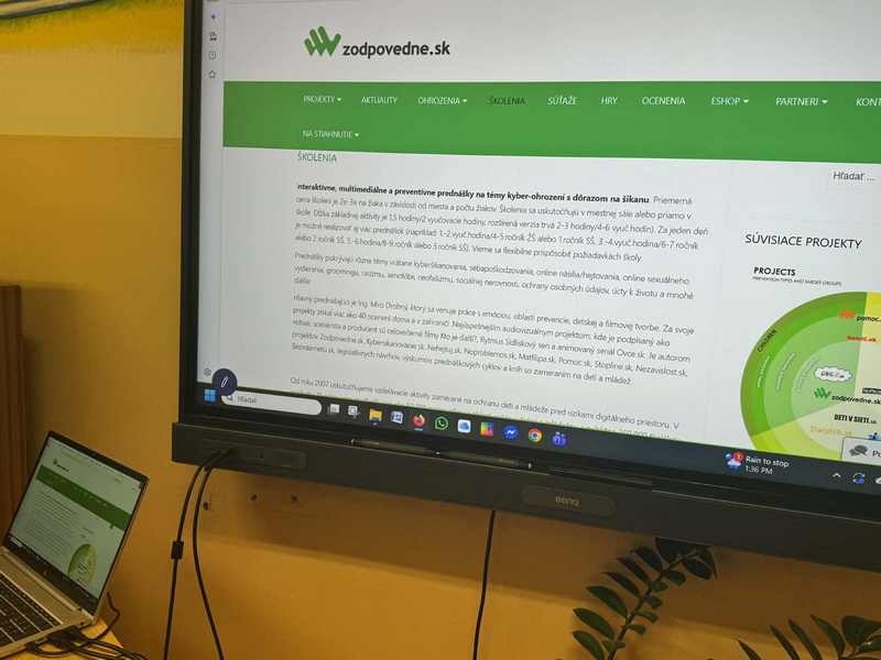 • Modul 2: Kyberšikana – príbeh Emky: Žiaci reagovali na nevhodné správanie online. Žiaci porozumeli pojmu kyberšikana a jej formám. Uvedomili si rozdiel medzi žartom a ubližovaním. Naučili sa, ako reagovať, keď sú svedkom alebo obeťou kyberšikany. Zároveň rozvíjali empatiu, bezpečné digitálne správanie a schopnosť vyhľadať pomoc.