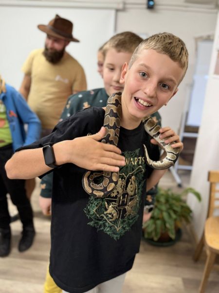 - Piatok bol rozlúčkovým dňom. Žiaci z Kopřivnice sa vydali na cestu domov, zatiaľ čo skupina z Kolína ešte navštívila Zvieraciu farmu Klokočina, kde sa vzdelávanie spojilo s praktickými ukážkami starostlivosti o zvieratá.